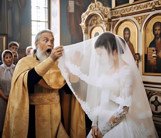 Pendant la cérémonie de mariage, au moment précis où le marié souleva le voile de la mariée, le prêtre déclara soudain d’une voix ferme :« La cérémonie doit être interrompue. »