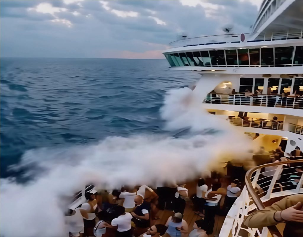 Le personnel courait. Les écrans affichaient des messages d’urgence. Certains passagers riaient nerveusement, croyant à une mise en scène. Mais quelques secondes plus tard, la mer s’est levée.