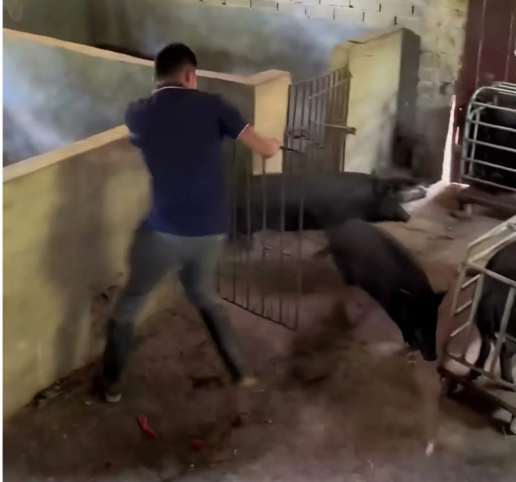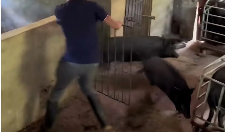 Sans un bruit, la truie se retourna et fonça sur lui. La force de l’impact le projeta contre la paroi en bois. Il tenta de se relever, mais Marfa était déjà sur lui. Elle ne se contentait pas de pousser — elle mordait, elle le bloquait, elle l’écrasait sous son poids. Il cria, se débattit, mais la porte était refermée derrière lui. Il était piégé.