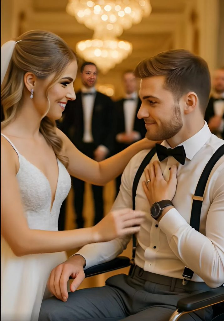 Nous avons choisi un petit domaine en Dordogne, entouré de vignes. La cérémonie était simple, intime, sincère. J’étais en robe ivoire, lui en costume trois pièces, impeccablement assis dans son fauteuil roulant noir.