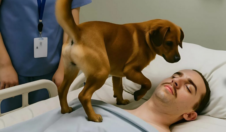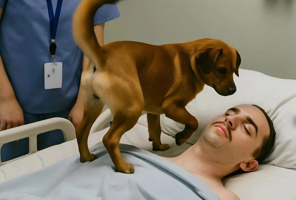 Le chien a d’abord hésité. Puis, lentement, il s’est approché du lit.