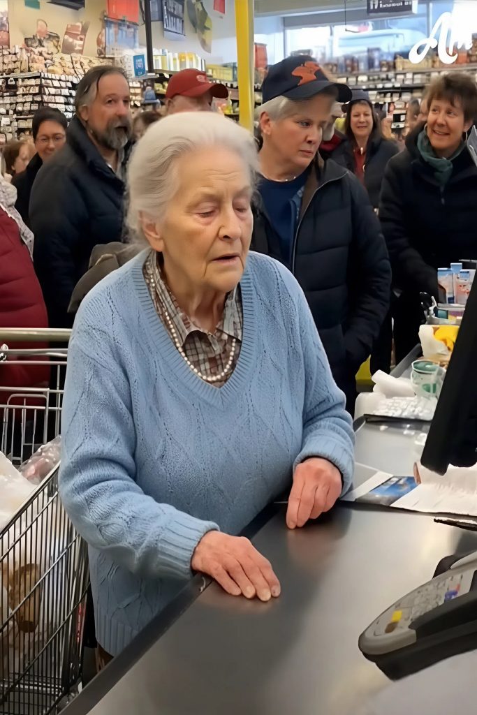 Lorsque la caissière annonça le montant, la vieille dame resta immobile. Elle fixa l’écran comme si les chiffres pouvaient s’effacer par magie. Puis elle sortit sa carte et la passa dans le terminal.